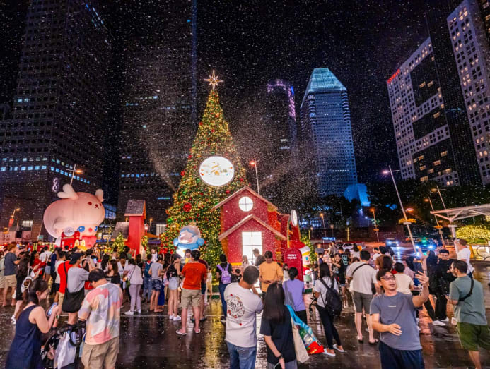 At Suntec City, shoppers will find themselves immersed in the holiday atmosphere, complete with jubilant decorations and larger-than-life inflatables. The centrepiece is the 6m-tall pink DIMOO Wish Deer inflatable, set amid a charming festive village at Suntec Plaza. Complementing the scene is a majestic 13m-tall Christmas tree, offering a stunning backdrop for eye-catching photos.