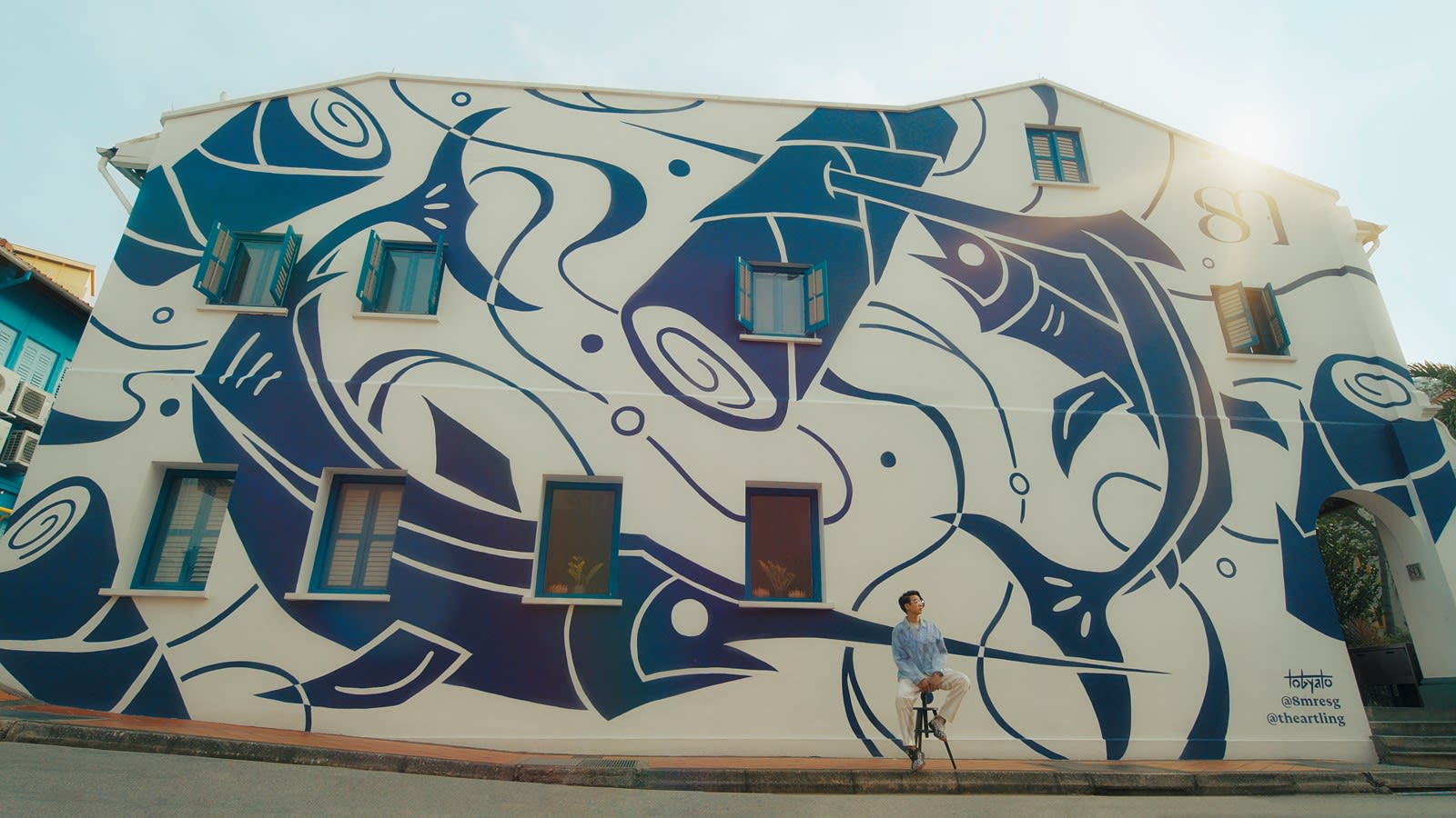 With a portfolio spanning larger-than-life murals and street art installations scattered across Singapore, his bold and colourful designs draw inspiration from diverse sources, including pop culture and traditional motifs.