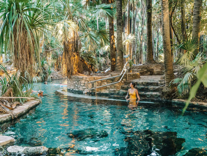 There’s more relaxation to be found at the region’s thermal springs. Katherine Hot Springs features naturally heated pools tucked along the riverbank, while Mataranka Thermal Pool is surrounded by palms that sway gently above you as you soak.