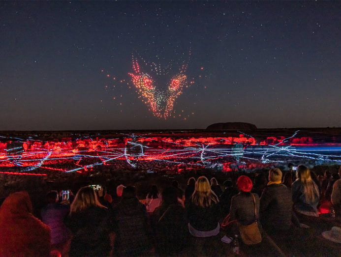 Then, rising from the earth like a silent giant, Uluru awaits. Walk the base with an Aboriginal guide and hear the sacred stories woven into every curve and crevice of this monumental rock. As the day ends, stay for Wintjiri Wiru, a breathtaking light and drone show that brings the Anangu people’s Mala story to life through lasers, sound and more than 1,000 choreographed drones dancing across the night sky.