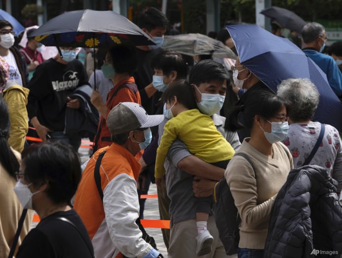 Domestic helpers from the Philippines line up at a temporary COVID-19 testing centre in Hong Kong on May 1, 2021. (File photo: AP/Kin Cheung)