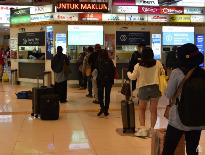 Meanwhile, Johor Bahru’s Larkin bus terminal was bustling with activity on Monday morning. Travellers with bags and haversacks were queueing at ticket counters in the dozens and there were lines of taxis waiting outside for customers.