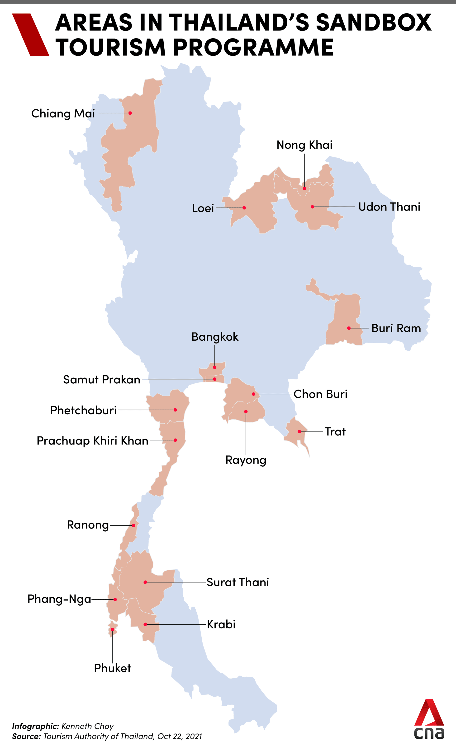 Besides the 46 low-risk countries and territories, Thailand will also welcome travellers from elsewhere with relaxed requirements as part of its Sandbox tourism programme. It was piloted in Phuket in July and will extend to include several tourist destinations such as Bangkok, Chiang Mai and Pattaya on Nov 1.