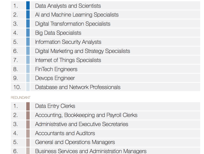 Meanwhile, people with deep technological skills - data analysts, digital marketers and Internet of Things Specialists - are in high demand.