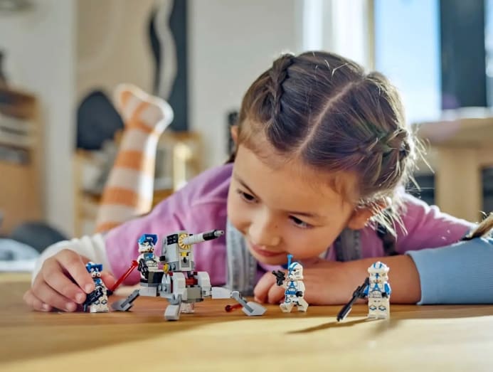 This Battle Pack offers hours of open-ended play for children. The 119-piece battle pack includes four Clone Trooper minifigures and an AV-7 anti-vehicle cannon with a spring-loaded shooter. To really expand opportunities for imaginative play, pair it with this set.