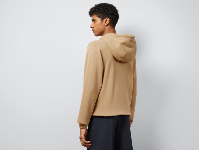 When it’s time to travel, you’ll both be fighting over who gets to wear this on the plane. The felted cotton jersey is breathable and cosy, allowing for maximum comfort (even if you’re stuck in economy class). While white and grey are classic colours, the gender-neutral light camel shade adds stealth luxury overtones to any outfit.