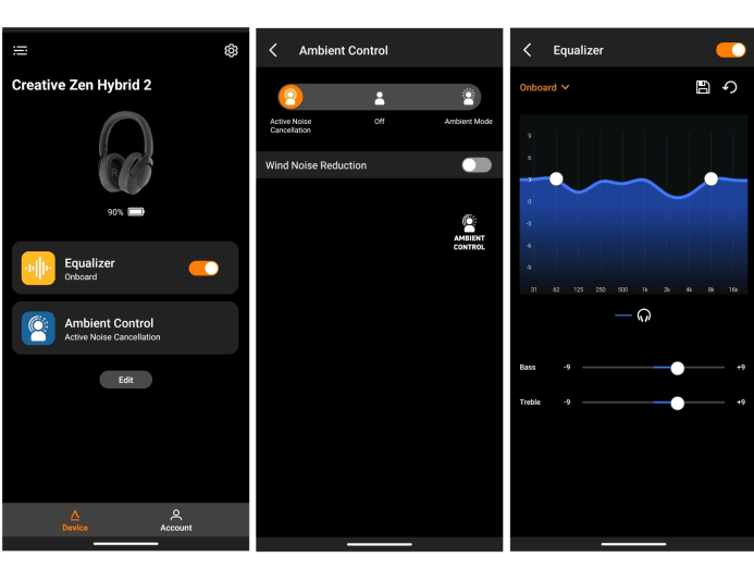 If the emphasis on bass isn’t to your taste, the sound profile can be tweaked in the Creative app with its custom EQ settings. On my Android phone however, the audio differences were very subtle. The app also gives access to ANC modes and other compatible Creative devices you may be using.