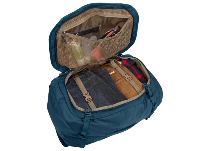 The Thule Landmark combines luggage organisation with trekking pack comfort. Its suitcase-style opening and internal compression straps make packing easy. It features a safe zone compartment for valuables, a covert cash stash pocket, loop locks, lockable zippers and a built-in sternum strap whistle for added security. The streamlined design features tuck-away straps to avoid damage in overhead bins and luggage carousels. A women’s version is also available.