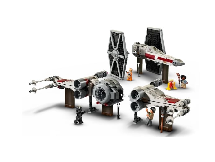 Exercise your imagination with this playset that lets you create mash-ups of the iconic TIE Fighter and X-Wing. The set includes parts to make each starfighter. Each features an opening cockpit for a minifigure and two spring-loaded shooters. It includes four minifigures and one L3-G0 droid.