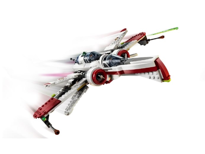 First seen in Revenge of the Sith, this ARC-170 Starfighter kit features three opening cockpits, six wings (four of which are adjustable) and two spring-loaded shooters. The set also includes three clone pilot minifigures and an R4-P44 droid.