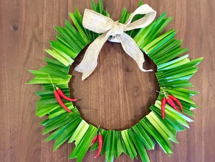Okay, so, we don’t live in a temperate clime and we don’t have holly, pine cones or poinsettia in our backyard (or void deck). That’s totally okay. Make your own tropical wreath with pandan leaves, ferns or even herbs.
