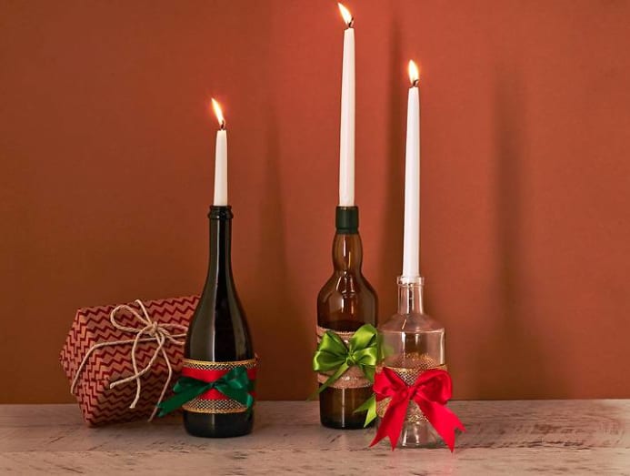 UPCYCLED BOTTLE CANDLE HOLDERS