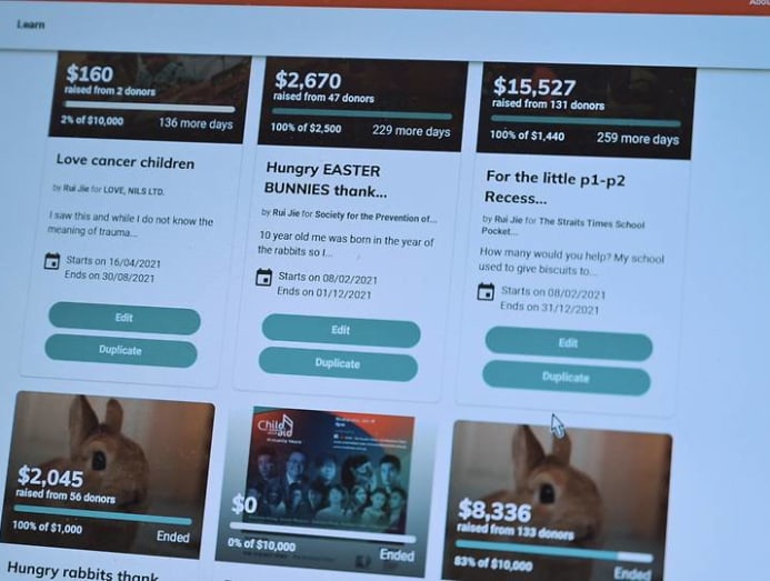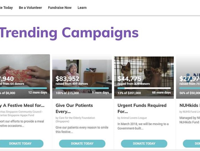 It saw a 158 per cent increase in donations from the previous year and a 140 per cent increase in the number of campaigns, says Tony Soh, deputy chief executive officer of the National Volunteer and Philanthropy Centre, which runs the platform.