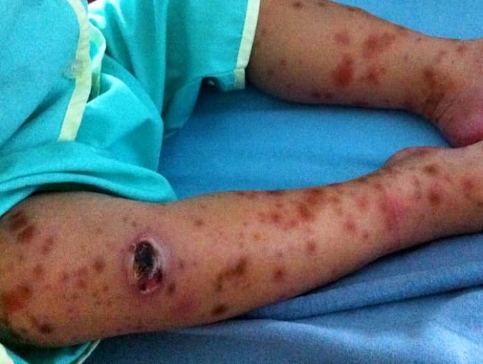 At the age of two, he was due for his measles, mumps and rubella vaccination, which is compulsory for children in Singapore. That was when his body reacted to the vaccine; besides a fever, scars appeared after a few days.