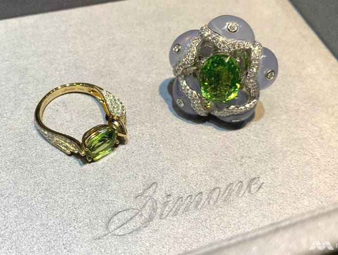 Distinguished by their lime-green hue, peridots were formerly plagued by their distinction as semi-precious stones, but Tay dismissed this nomenclature. “Did you know that only three or four countries come to mind when talking about gem-quality peridots?" he said. "They are Pakistan, Myanmar, China, and the US (Arizona). Most of these mines are small-scale open pits or open-cast mines, compared to the open-pit mining of diamonds in general.”