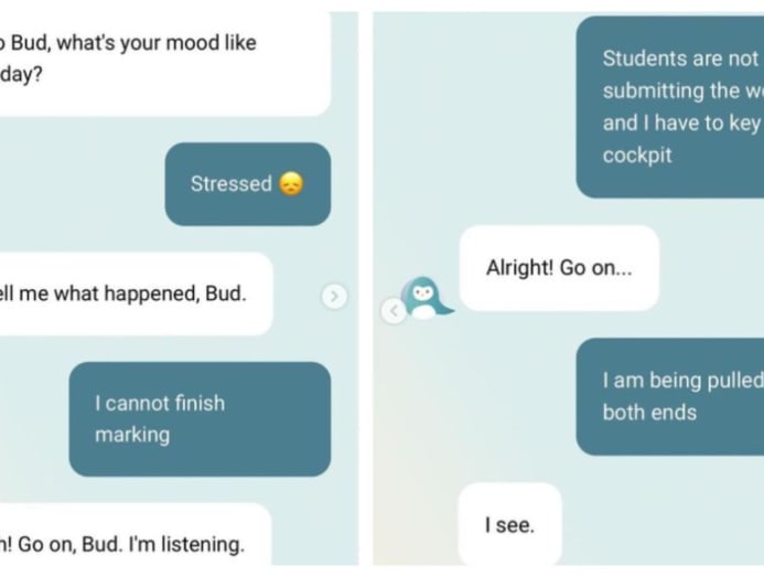 In conversation with someone who has tried Wysa, a special education teacher (who wishes to remain anonymous) shared, “While I can see that it could have benefits in being able to access it anytime, it does not seem like a valid response to teacher stress.