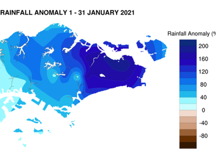 The Meteorological Service Singapore (MSS) report stated it was the wettest January in the last 40 years. The maximum positive rainfall anomaly of 194 percent was observed over the eastern part of Singapore.