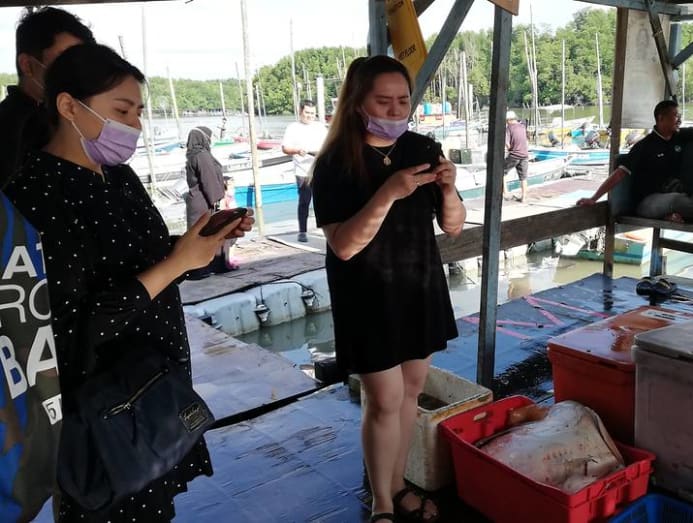 Customers waiting for their seafood at a jetty in Sg Che Manan before the MCO was reimposed. (Photo: Serina Rahman)