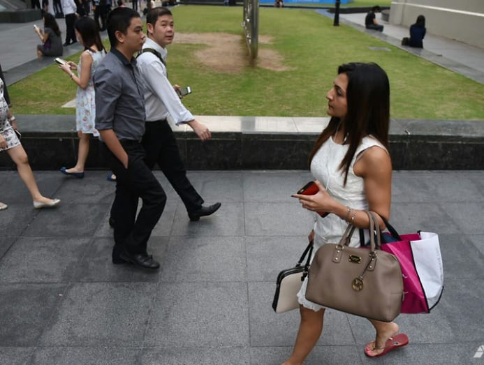 A woman walks through the Central Business District in Raffles Place. (File Photo) Office workers at Raffles Place (File photo: Ngau Kai Yan)