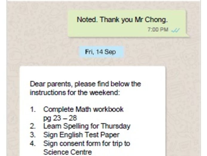 Sometimes, in our zest to engage parents, we may have contributed to their anxieties. For example, some teachers will WhatsApp parents telling them to ensure that their children complete their homework and also list what homework to do.