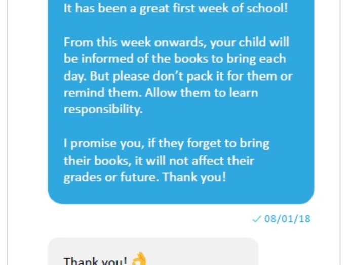 What’s worse, some parents may develop a reliance on these messages, and expect to be reminded on what homework to check. If parents can become reliant, what more the student.