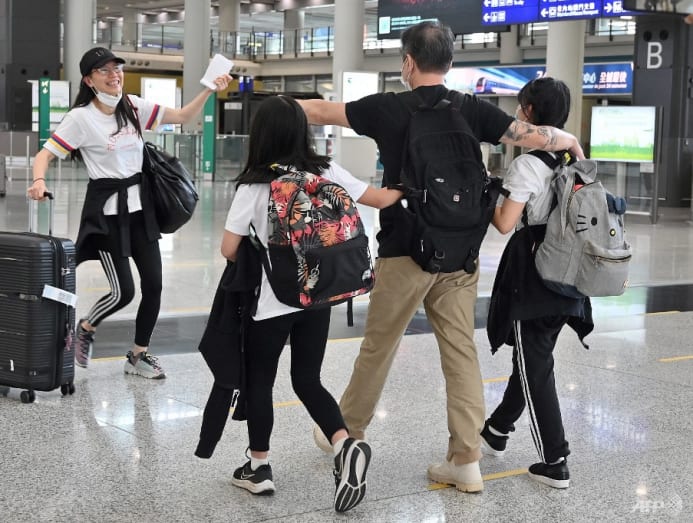 A woman arrives at Hong Kong International Airport before making her way to hotel quarantine on Sept 23, 2022, a few days before measures were relaxed. (Photo: AFP/ISAAC LAWRENCE)