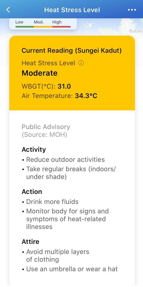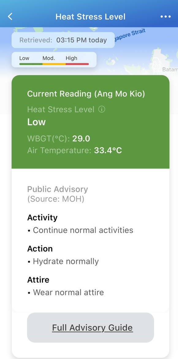 The heat stress advisory is an important first step to build awareness of the dangers of heat exposure and guide Singaporeans towards behavioural adaptations. Further workplace and lifestyle changes will be inevitable as extremes become more frequent and severe.