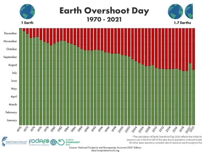 In 1970, Earth Overshoot Day was on December 30. This year, it happened on Jul 29.