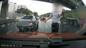 Screengrabs of dashcam footage circulating on social media of a driver allegedly reversing his car into a Traffic Police officer on Oct 28, 2021.