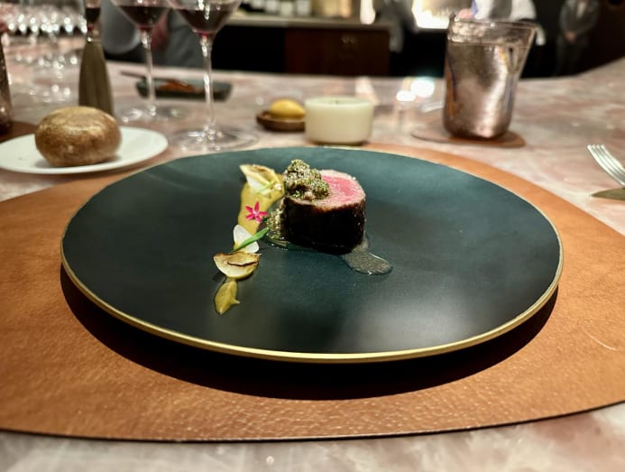 "I think the only dish we have representing Chile here would be the empanada, which we try to keep as classic as possible,” he added. Named “Sunday Lunch”, the delicate empanada is filled with wagyu – offcuts from a following course of striploin with chimichurri – and topped with a pebre gel; pebre is a Chilean condiment traditionally made of coriander, chopped onions, vinegar, oil, aji peppers and chopped tomatoes.