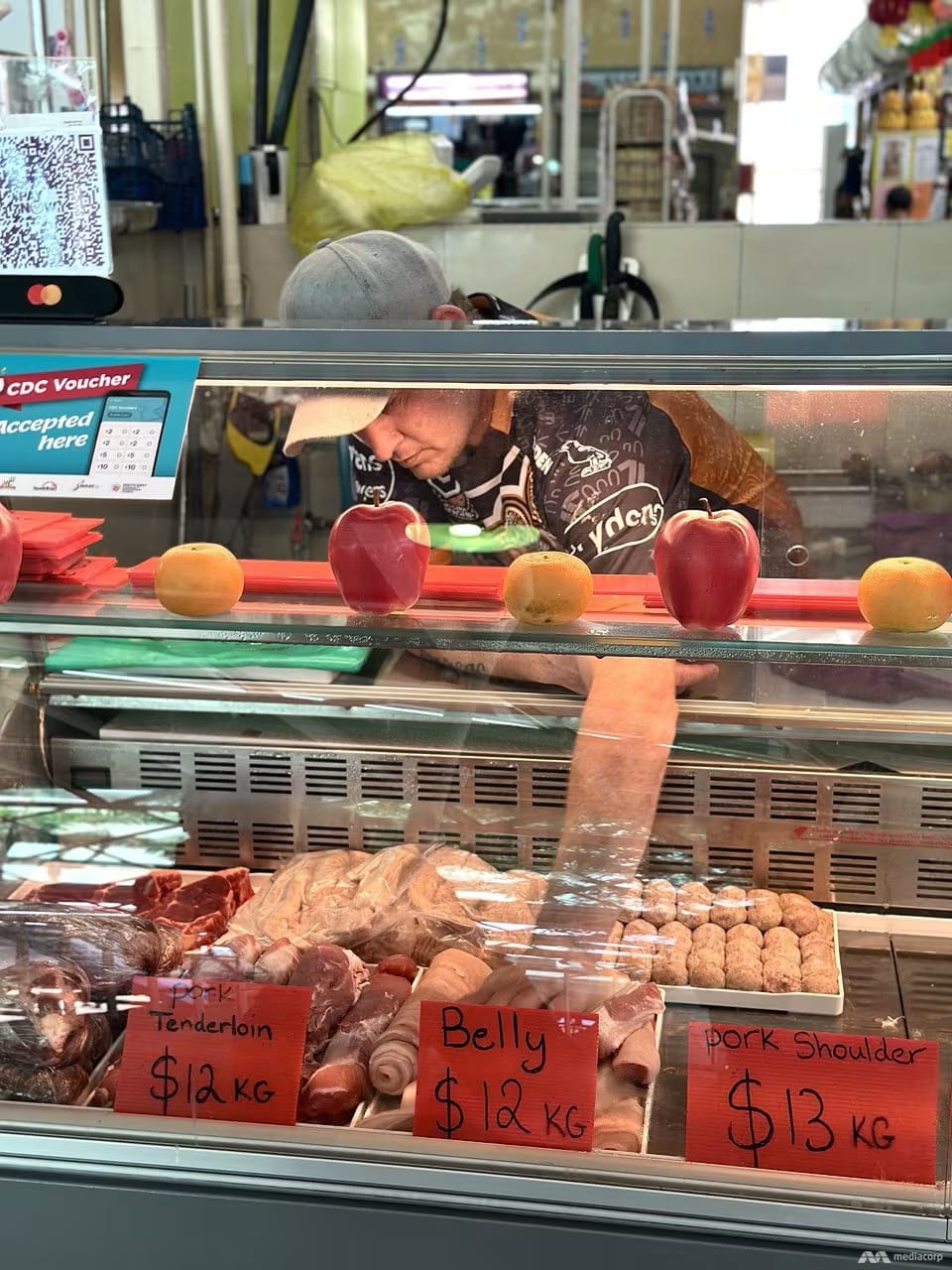 Adam Speering owns a pasar butchery stall offering Australia-imported meat. (Photos: Mediacorp/Yip Jieying)