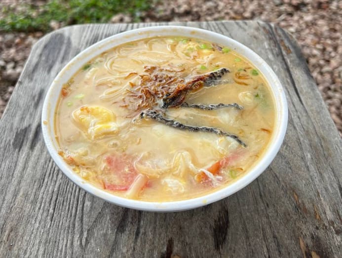 For lunch service, the stall offers cai png instead of its usual zi char. It recently added fish soup, priced at a wallet-friendly S$4.50, to its menu. “We wanted to serve something affordable and convenient to cater to the office crowd and workers in the vicinity. Fish soup was a natural choice as we specialise in fish head steamboat. This is made using the same base stock as the broth for our steamboat,” explained Ben. The fish soup is currently available daily from 11.30am to 4pm.