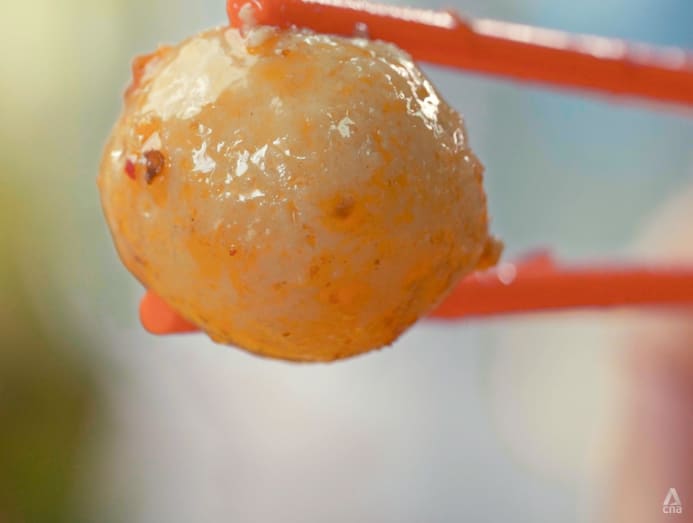 Fishballs are also notoriously difficult to create. Traditionally, hand-scooped spheres of fish paste are thrown repeatedly from height on to a work surface to get the perfect shape and texture.