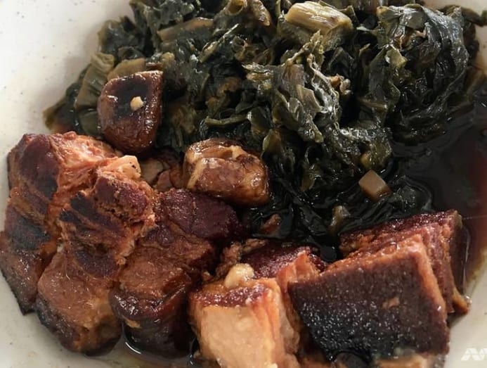 Within minutes, he and his business partner, chef Chua York Foo, whipped up a veritable feast for one. The table was covered with steaming plates of chye poh (savoury preserved radish) omelette, mei cai kou rou (steamed pork belly with preserved mustard greens), bean sprouts with salted fish and steamed cod.