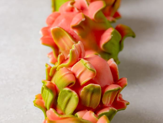 The dramatic, irregular shape of the tropical fruit posed a unique challenge for Cedric and his team. “It’s not regular, so we can’t use a mould and we have to do everything manually to make it look natural,” he explained.