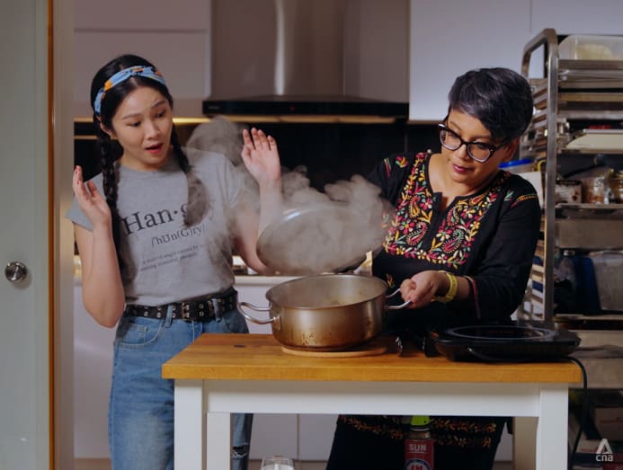 Vasun shows us how a traditional Indian method provides an easy way to "smoke" food, making her dish's flavours more dimensional. (Photo: CNA/Joyee Koo)
