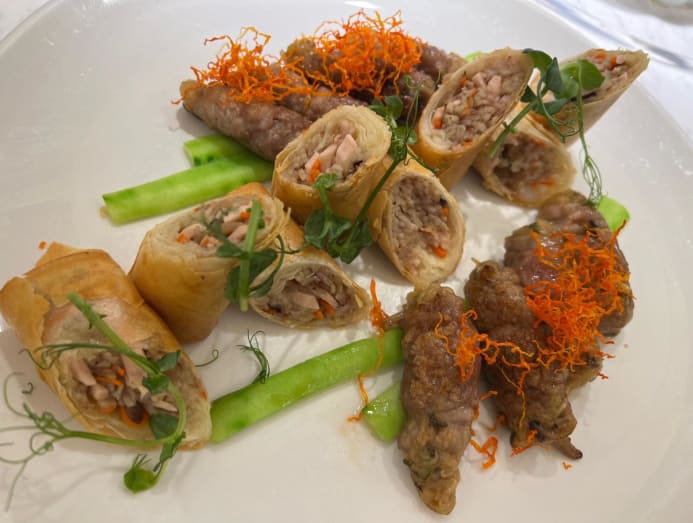 Lim shared that he was inspired to create this dish from a similar one he tasted back in the 1990s by a Hong Kong chef in Singapore. But for this updated take, he has opted to swop out the fried prawn for a steamed one, making the unique dish lighter on the palate.