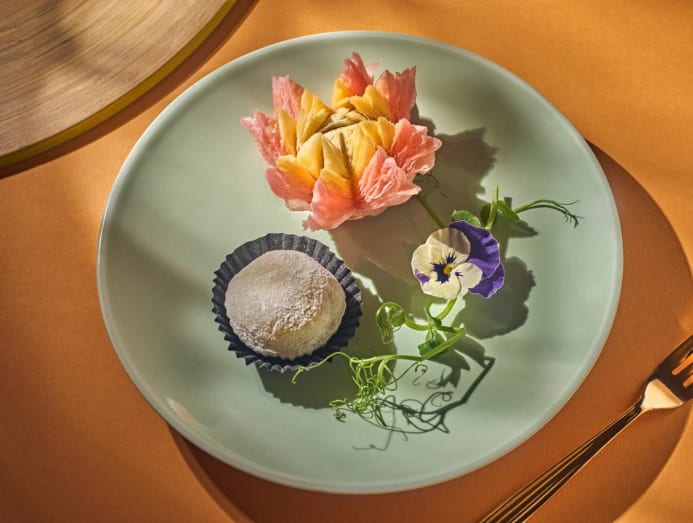 Requiring meticulous effort to create is Chef Chan Hwan Kee’s dessert – Baked Peony Flower Red Bean Pastry and Durian Glutinous Rice Ball.