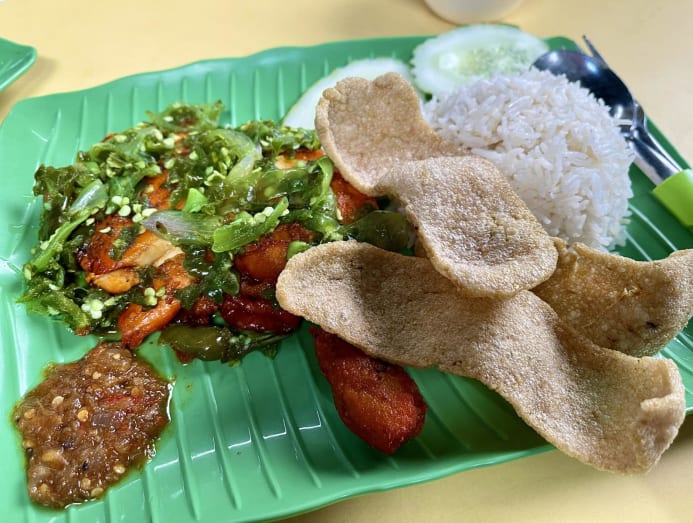 “When I started, nobody knew. They would ask me, ‘Apa? Apa?’ ('what is this' in Malay),” Uncle Jab recounted. Now, the stall sees long queues forming each day, which was what first attracted Vincent to the stall – he joined the line to see what the fuss was about. Since then, he returns at least twice a month for his fix because “the green chili is so beautiful and fragrant”.