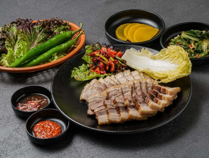 Beyond noodles, the menu features Korean comfort food favourites like the crispy Korean fried pork cutlet (S$18), bossam (tender pork belly slices wrapped with napa cabbage, S$15) and pancakes made from buckwheat flour – like the kimchi buckwheat pancake (S$19) and spring onion seafood pancake (S$19).