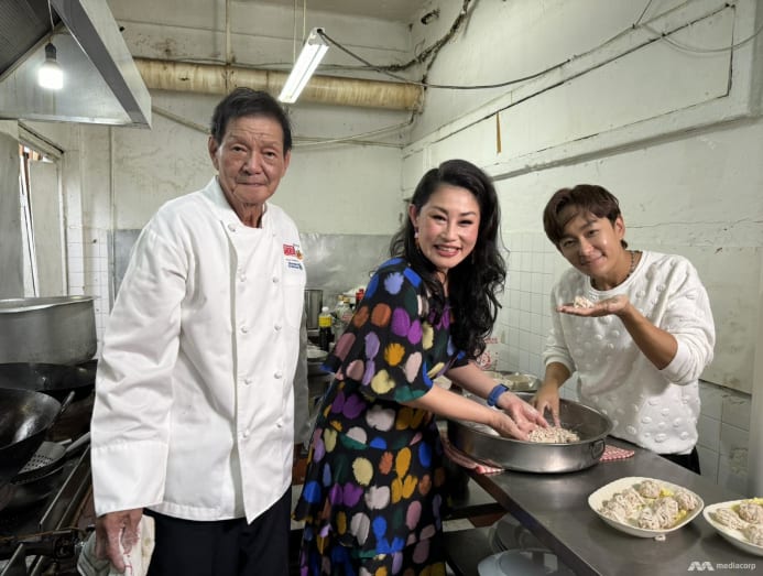 From left: Actor Jeremy Chan, Gold 905 DJ Denise Tan and Plum Village owner and chef Lai Fak Nian. (Photo: Mediacorp)
