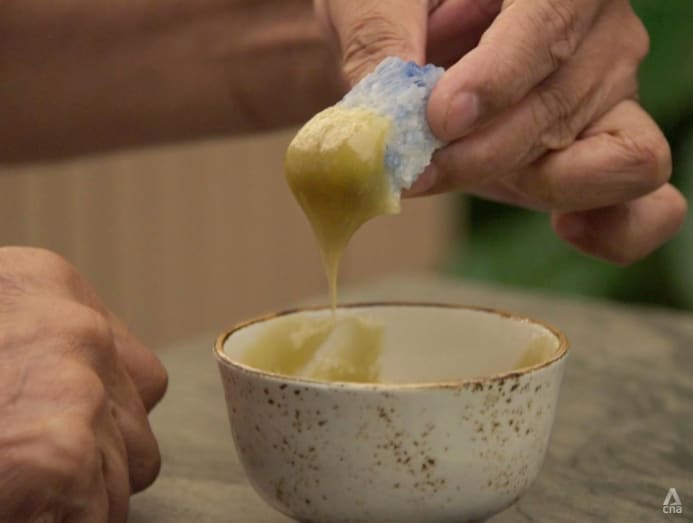 Chef Damian D’Silva tells CNA Lifestyle how to make kaya the traditional way (with the help of a “kaya wand”) to go with pulut tekan or pulut tai tai.