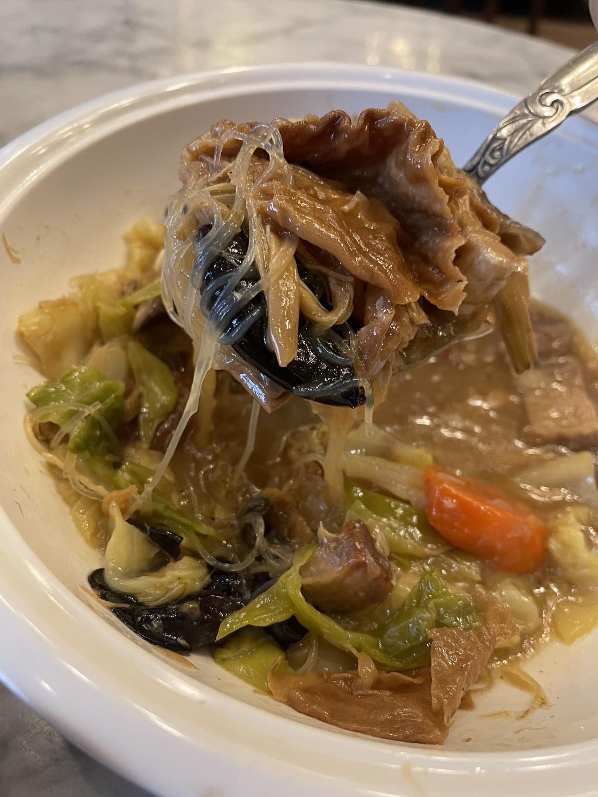 “It’s actually survivor food for my family. My grandma, together with her maternal grandma, would go to the wet market to buy scraps of vegetables that had been discarded, and they would make a vegetable stew,” he shared.