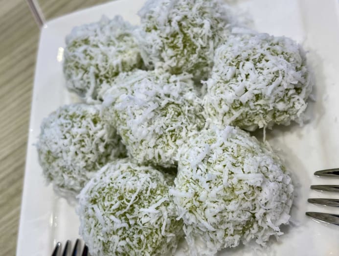 Green orbs of pandan-perfumed, coconut-coated perfection, the ondeh-ondeh was best eaten whole. Their liquid gula melaka centres explode with a gush so delightful, I had to stop myself from reaching for a third helping.