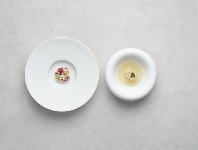 He’s chosen to present a dish of Hokkaido king crab served two ways: Cold and hot. There is crab meat accompanied by a cucumber-tarragon sorbet and a layer of Riesling and Tosaka seaweed jelly; and then Chinese-style crab dumplings in a warm broth. “Dumplings are one of my favourite foods,” the 30-year-old said.