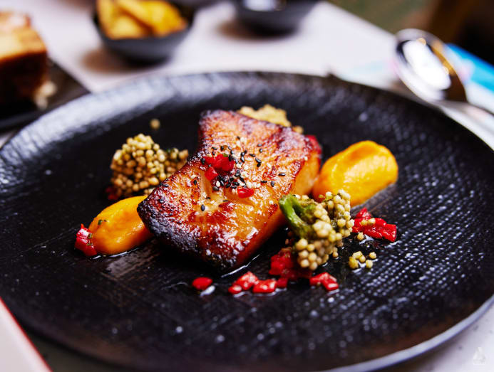 As for the food, they both recommend the baked red miso-marinated Alaskan cod served with pumpkin foam. It’s served with “broccoli lollipops” – florets covered in bubu arare, which are tiny round grains of popped glutinous rice – and drizzled with pimiento vinaigrette.
