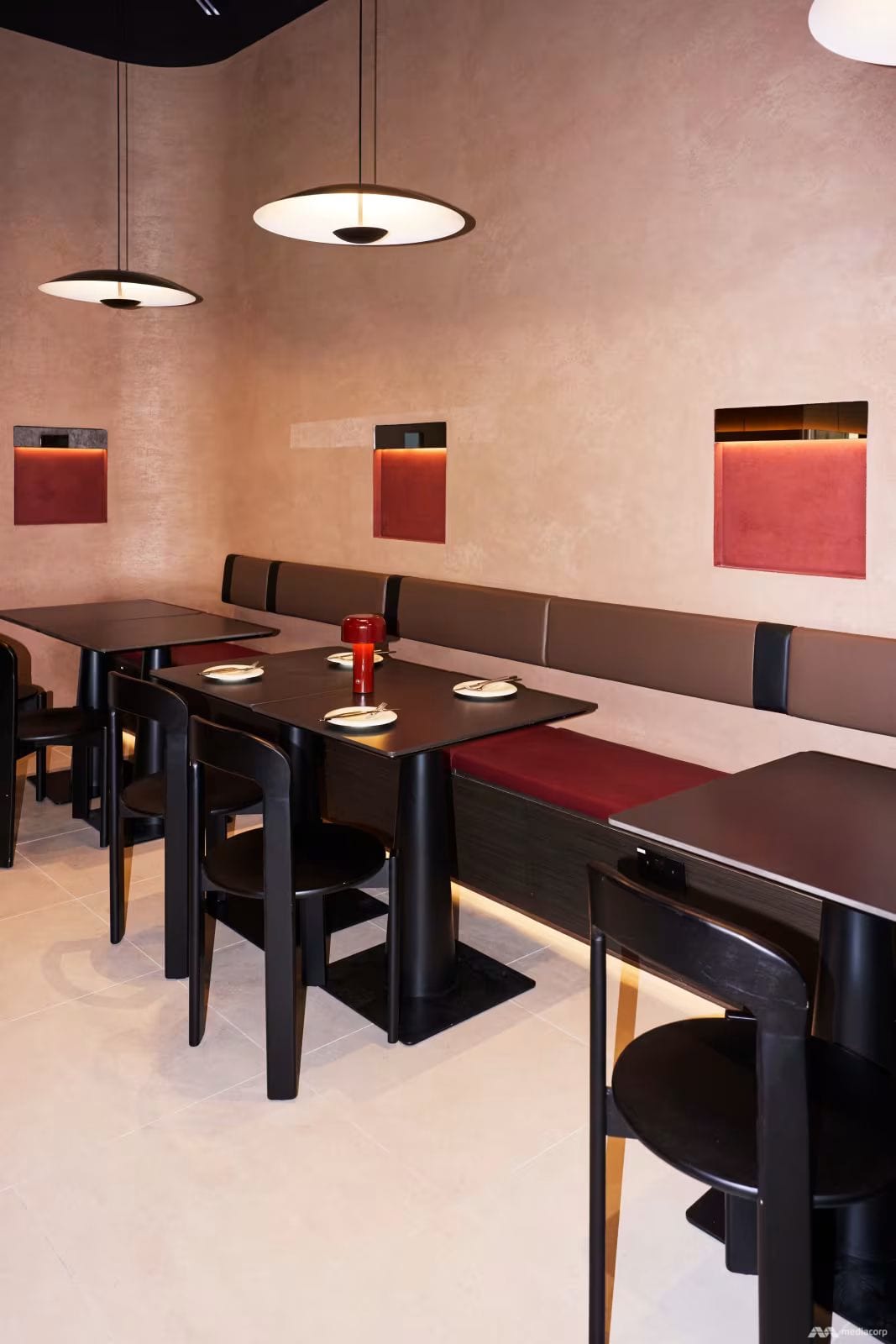 When 8days visited the cafe for a sneak peek, some finishing touches were still underway – but the layout was already taking shape. Furnished in an earthy palette with burgundy accents, the space is calm and understated, with black tables and chairs adding a contemporary touch.