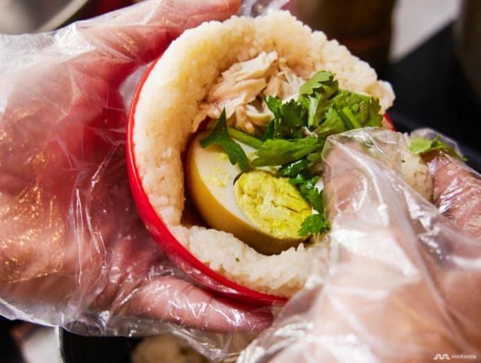 We find its crust pretty interesting to munch on, almost like a delicate Japanese rice cracker. But the once-juicy chicken meat filling became a little dry from its stint in boiling oil. We reckon this could be improved by packing regular (and more flavourful) chicken rice into a giant ball with all the fixings.