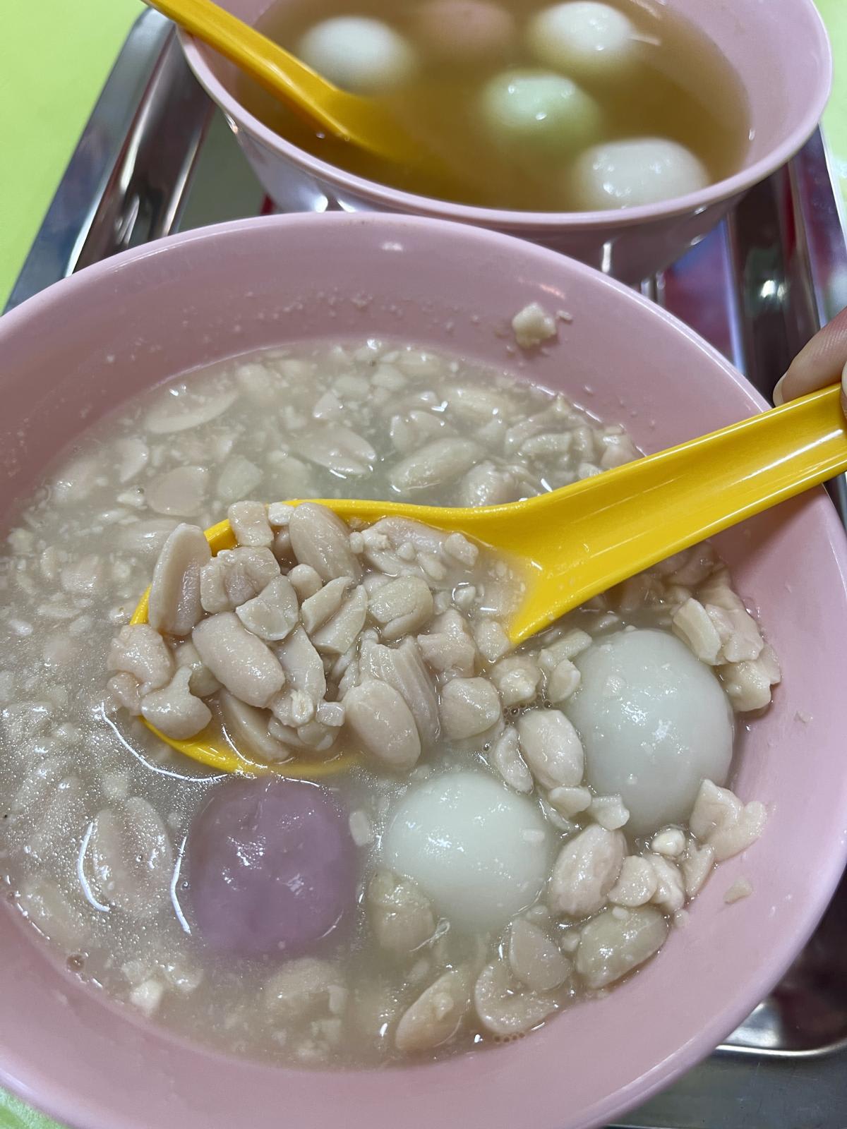 Faced with such variety, we ended up ordering a little bit of everything – a bowl of ginger soup for me, a bowl of peanut soup for Chef Melvyn and one of each ah balling flavour for both of us.