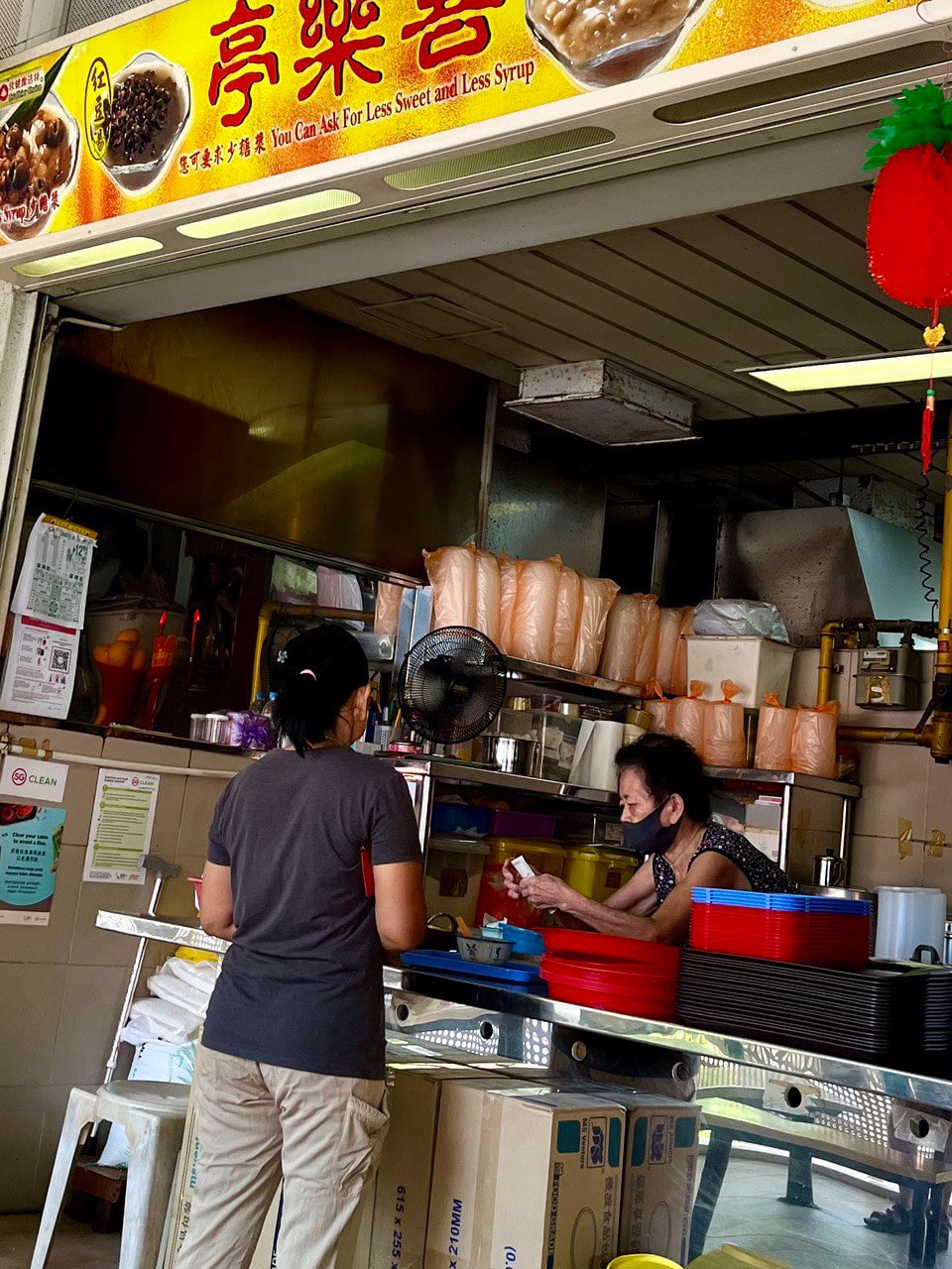 It reminds us of a certain infamous nasi ayam goreng seller at Lucky Plaza, so be prepared to recite your order when you approach auntie. After taking our order, Yang scoops the desserts from a vat set in front of her into nostalgic Chinese porcelain soup bowls.